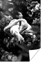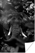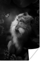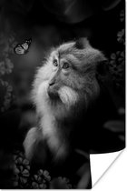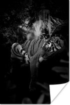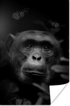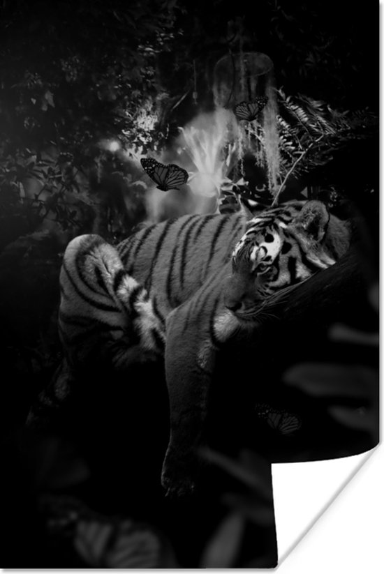 Affiche Tigre et papillons dans la jungle - noir et blanc - 80x120 cm