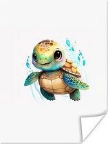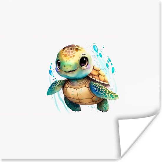 Affiche Tortue - Aquarelle - Couleurs - Animaux - Filles - Garçons - 75x75 cm
