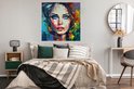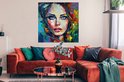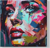 Affiche Visage - Femme - Peinture à l'huile - Colorée - Art - 100x100 cm XXL