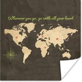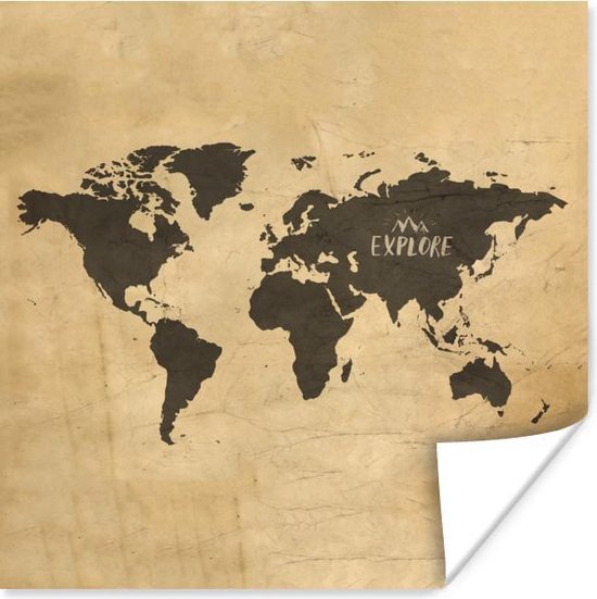 Affiche Wereldkaart - Vintage - Voyages - 30x30 cm