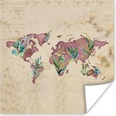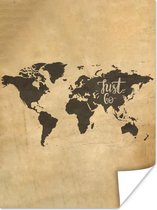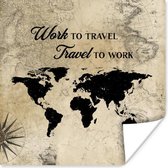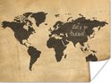 Affiche - Wereldkaart - Voyages - Vintage - 40x30 cm