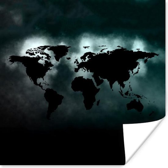 Affiche Wereldkaart - Zwart - Lumière - 100x100 cm XXL