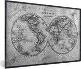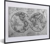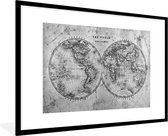Affiche Zwart et Wit - Wereldkaart historique ancienne - noir et blanc - 60x40 cm