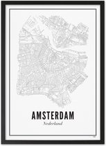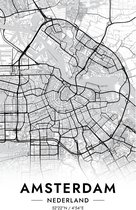 Affiche Zwart Wit - Plan de la ville - Amsterdam - Zwart Wit - 60x80 cm