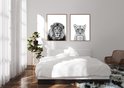 Votre mur nu pourrait-il créer une atmosphère supplémentaire? Ces deux affiches noir et blanc représentant un lion et une lionne complètent immédiatement la pièce. Les affiches en Zwart et blanc sont épurées et calmes, et sont donc également très appropriées comme décoration murale pour la chambre à coucher.
