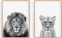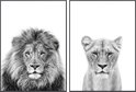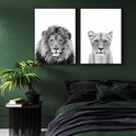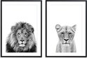 Affiches Zwart et blanc - Affiches Animaux - 2 pièces 30x40 cm - Lion & lionne - Décoration murale - Décoration chambre