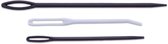 Set de 3 aiguilles à laine avec chas en nylon Set de trois aiguilles à laine d'aluminium de différentes épaisseurs et tailles pour coudre des tricots et pour coudre ensemble des pièces au crochet. Puisqu'elles sont en aluminium, les mailles glissent facilement sur ces aiguilles sur tous les projets de tricot. La boucle en nylon résistant, qui forme le chas de l'aiguille à coudre, permet une insertion rapide et facile des laines plus épaisses. Utilisez ces aiguilles à coudre pour cacher les fils de votre tricot ou pour créer une broderie sur le point jersey ou ajouter des détails personnalisés à vos projets de crochet.