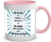 Cette tasse cadeau Sarah et Abraham 50 ans est spécialement conçue pour les hommes et les femmes anniversaires et a pour thème Hourra 50 ans. Le mug a une capacité de 350 ML et est en céramique. L'intérieur du mug et l'anse sont bleus. Cette tasse passe au lave-vaisselle et au micro-ondes. Laissez-vous inspirer par les différents styles sur les tasses !