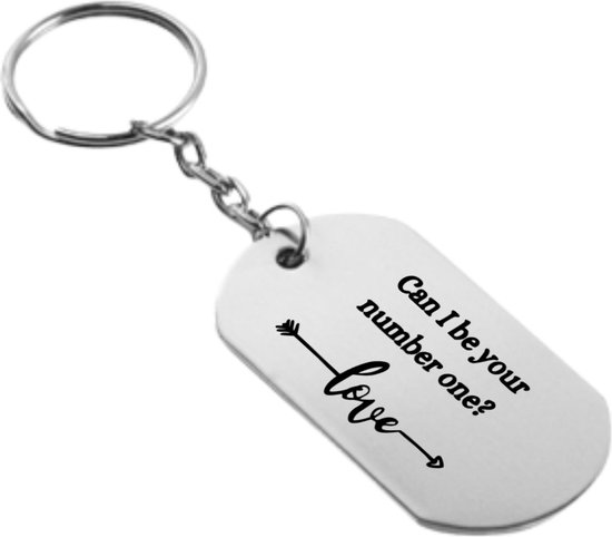 Ce porte-clés Can I Be Your number one est spécialement conçu pour les relations et a le thème de l'amour. Le porte-clés a une forme rectangulaire avec des coins arrondis et mesure 54 mm de long sur 29 mm de large. Il est livré avec un porte-clés auquel est attaché le pendentif. Le porte-clés est livré dans son emballage d'origine.