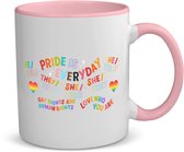 Cette tasse His Queen est spécialement conçue pour elle - lui et a un thème d'anniversaire. Le mug a une capacité de 350 ML et est en céramique. L'intérieur du mug et l'anse sont roses. Cette tasse passe au lave-vaisselle et au micro-ondes. Laissez-vous inspirer par les différents styles sur les tasses !