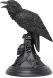 Un chandelier au design corbeau, rose et tête de mort, fini à la main dans la résine noire de la plus haute qualité.