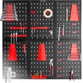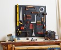 Avec ce mur d'outils, vous pouvez stocker tous vos outils de manière organisée. Grâce aux nombreuses options de montage, vous pouvez stocker tous vos outils. Le vaste ensemble d'accessoires comprend des crochets simples ainsi que des supports complexes pour clés à fourche, tournevis, marteaux et plus encore. Le mur se compose de trois parties distinctes qui peuvent chacune être utilisées séparément. De plus, un jeu de porte-outils de 25 pièces est inclus.