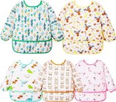 AliRose – Set complet de 4 vestes imperméables pour aliments et loisirs créatifs | 2 variantes flexibles + 2 variantes robustes | Manches longues | AMOUR + Panda + Dino + Fleurs | Bavoirs anti-déversement ultimes pour une utilisation quotidienne