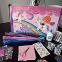 Ce qui est fourni si vous commandez ce produit. - ACCESSOIRES -11x Boîte de Glitter - 1 gramme - Licornes, Coquillages, Sirène, Étoiles, Papillons, Flocons de neige, Smiley, Étoiles fermées, Feuille, Hartjes -7x Canister Glitter - Paillettes fines Petite bouteille - 7 couleurs, -3x Colle pailletée 3 flacons, -1x Flacon de colle -100x Papier carré 2,5cm x 2,5cm -40x Papier différentes couleurs -6x Paillettes en Papier -1x Feuille Faux Tatouage - Licorne -1x Planche de Autocollants - Licorne / Paarden, -50x bâtons de popsicle en bois -23x Fleurs et feuilles en mousse -150x Paillettes différentes couleurs -50x perles de poney -50x Plumes -50x yeux écarquillés - colorés -50x yeux écarquillés - avec Wimpers -150x Google Eyes - Normal -50x cure-pipes - Normal -50x cure-pipes - Glitter -100x Pompons – Glitter -100x Pompons - Normal OUTILS •Ciseaux adaptés aux enfants •Boîte à outils avec poignée de transport •Manuel d'instructions
