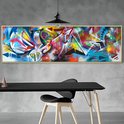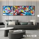 Allernieuwste.nl® Peinture sur Toile Moderne Abstrait Graffiti Grand Format - Format XXL - Moderne - Couleur - 70 x 210 cm