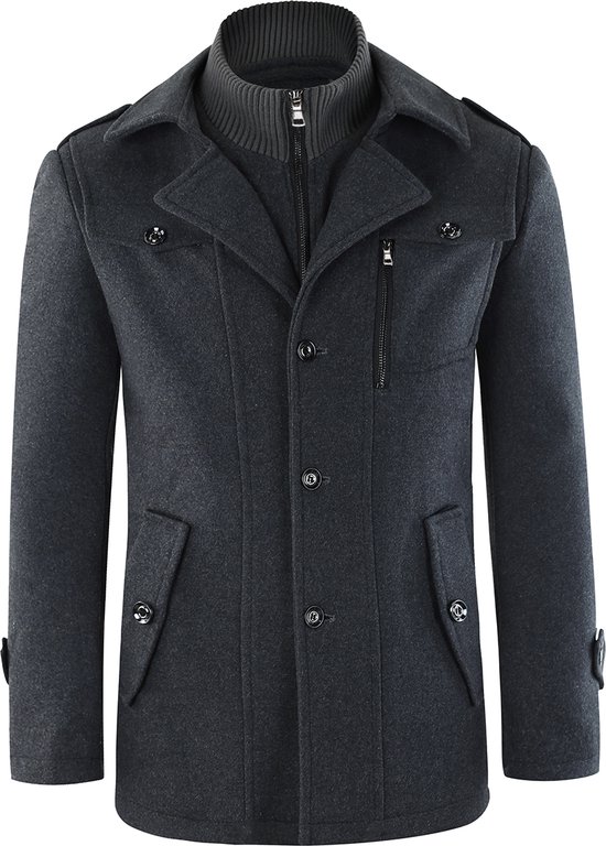 Allthemen Manteau en Laine pour Hommes avec Col Montant - Veste Chaude d'hiver Coupe Slim - S