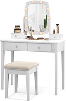 Coiffeuse Amalee - Wit - Avec Miroir et Tiroirs - Tabouret Inclus - Table de Maquillage avec 2 Étagères