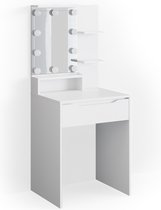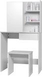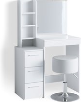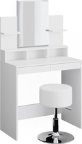 Amalee - Coiffeuse - Wit - Avec miroir - Avec tiroirs - Tabouret inclus - Avec 2 étagères - 75 x 40 x 138 cm (L x P x H) - Table de maquillage - Pour chambre d'adolescent