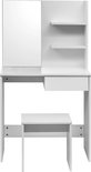 Deux étagères sur le côté vous offrent un espace de rangement supplémentaire pour les petits objets, tandis que le tabouret inclus assure un confort optimal lors du maquillage. Le design élégant et minimaliste s'intègre parfaitement dans une chambre d'adolescent moderne ou classique et offre une apparence fraîche et légère.
