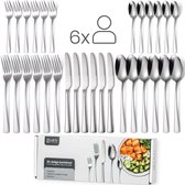 J'ai commandé cet ensemble de couverts deux fois et les fourchettes à gâteau une fois. Je suis très satisfait de tout jusqu'à présent. Les couverts sont légèrement plus grands que mes couverts précédents, je trouve que c'est très beau et a des yeux chics. Les couverts sont également un peu plus lourds, les couteaux sont très lourds, ce qui est agréable dans la main. Les fourchettes à gâteau sont légèrement plus grandes que les cuillères à café. De plus, ceux-ci sont également très beaux et nets! A ce jour aucune forme de décoloration, ils passent ici au lave-vaisselle en mode éco. Si cela change, j'ajusterai mon avis. Le seul inconvénient minime que j'ai trouvé était l'emballage, les attaches étaient si serrées que je pouvais à peine les lâcher, cela a causé une petite irritation.