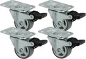 AMIG roulette pivotante/roue de transport avec frein - 4x - D25mm - caoutchouc - capacité de charge 40kg - gris