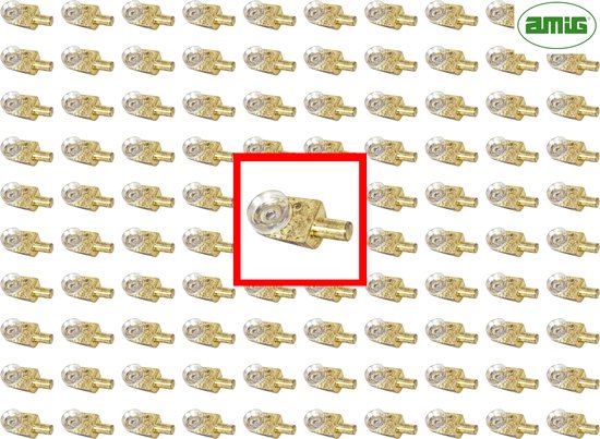 AMIG – Support d'étagère en verre Support d'étagère d'armoire Ø5 x 9mm | avec ventouse Ø11mm | Prise en charge 17mm | Zamak plaqué Messing | 100 pièces