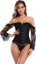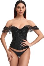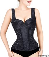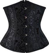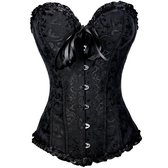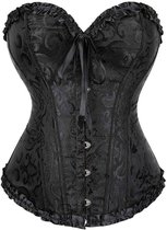Ce corset noir à lacets épouse parfaitement le corps de la femme et possède des crochets à l'avant pour pouvoir l'attacher à l'avant et à l'arrière. Le corset contient un motif floral noir. Le corset noir à lacets d'Amorable est fini avec un grand nœud noir et est combiné avec un string avec le même motif.