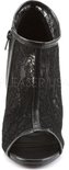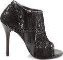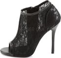 Fabulicieux. Un talon aiguille noir à bout ouvert avec couche supérieure en dentelle et fermeture à glissière.