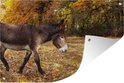 Âne marchant à travers les feuilles d'automne affiche de jardin toile en vrac 60x40 cm - petit - toile de jardin / toile d'extérieur / Peintures pour l'extérieur (décoration de jardin)