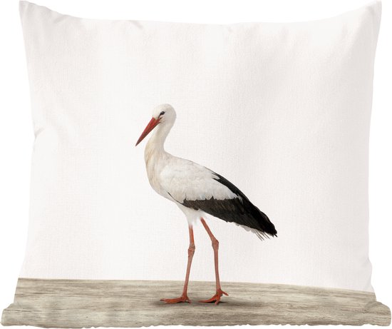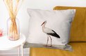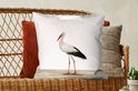 Une grande cigogne sur fond blanc.Également disponible comme coussin décoratif extérieur