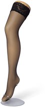Annes Bas autofixants fins avec bande rayée Sindis, 15 deniers, noir, taille XL/ XXL