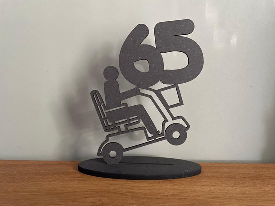 Rendez le 65e anniversaire de votre bien-aimé encore plus spécial et inoubliable avec notre support unique ! Ce design ludique et humoristique montre un scooter de mobilité effectuant un wheelie spectaculaire. Mesurant 18 cm de haut et 14 cm de large, ce support n'est pas seulement un accessoire pratique, mais aussi un excellent moyen de faire sourire tout le monde.