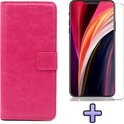 Apple iPhone 12 & iPhone 12 Pro Case Pink - Wallet Book Case - Porte-cartes & Languette magnétique & Protecteur d'écran en Verres