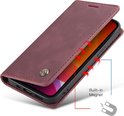 Écrit pour: Apple iPhone 12 Pro Max Caseme Bordeaux Rouge - Etui portefeuille