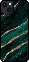 Smartphonica Coque de téléphone pour iPhone 15 Plus avec imprimé marbre - Coque arrière en TPU design marbre - Vert Or pour iPhone 15 Plus