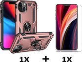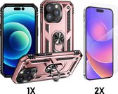 Apple iPhone 14 Plus Case Rose Gold & 2X Verres Screen Protector - Anti-Shock Hybrid Armor avec Kickstand Ring