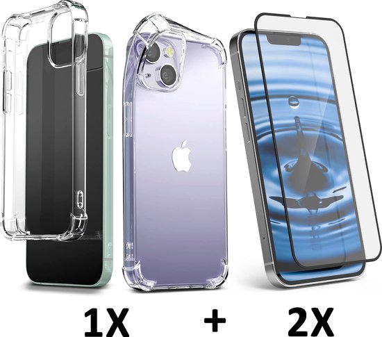 Apple iPhone 14 Plus Case Transparent & 2X Full Verres Screen Protector - Coque arrière hybride antichoc Extra résistante