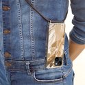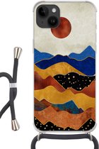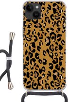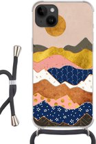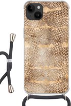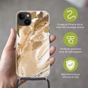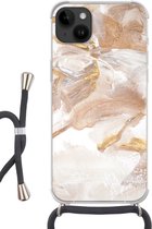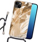 Apple iPhone 14 Plus - Étui à bandoulière - Peinture - Or - Beige - Siliconen - Bandoulière - Coque arrière avec cordon - Étui pour téléphone avec cordon - Étui avec corde