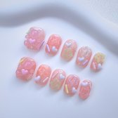Appuyez sur les ongles - Presse faite à la main sur les Ongles - Ongles ronds courts à motif coloré - Starburst Splash - Taille S