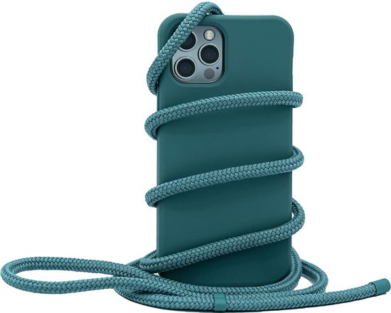 Arara Silicone Case iPhone 12 / 12 Pro Siliconen Case Dark Green with Dark Green Lanyard / Back Cover / Case / iPhone