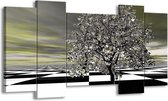 Arbre de peinture sur toile | Jaune, gris, blanc | 120x65 5Liège. Cette peinture sur toile fait partie de la collection GroepArt et c'est un moyen simple et rapide de transformer complètement n'importe quel mur! Nos peintures sur toile contiennent de belles images imprimées sur du matériel en toile, tendues sur un cadre en bois. Cette peinture est disponible en 45 tailles sur notre site Internet. Personnalisation possible! Cette peinture sur toile mesure. Incl. jeu de suspension (à confirmer par vous-même). Le paquet contient 5 panneaux de peinture, manuel, jeu de suspension, protégé par du papier bulle, emballé dans une boîte solide.