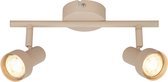 Spot Brinja à 2 lampes en aluminium La lampe Brinja est de couleur Panton® Iced Coffee et se compose de deux spots cylindriques qui peuvent tous deux être inclinés à 90 degrés et tournés à 350 degrés autour de leur eigen axe. Ces spots sont fixés sur un support rectangulaire, ils peuvent donc être montés aussi bien au mur qu'au plafond. La lampe est en aluminium et s'adapte à différentes pièces grâce à son design simple. Que ce soit dans un bureau fonctionnel ou dans une maison chaleureuse, cette lampe intemporelle est le complément parfait pour de nombreux types d'utilisation.