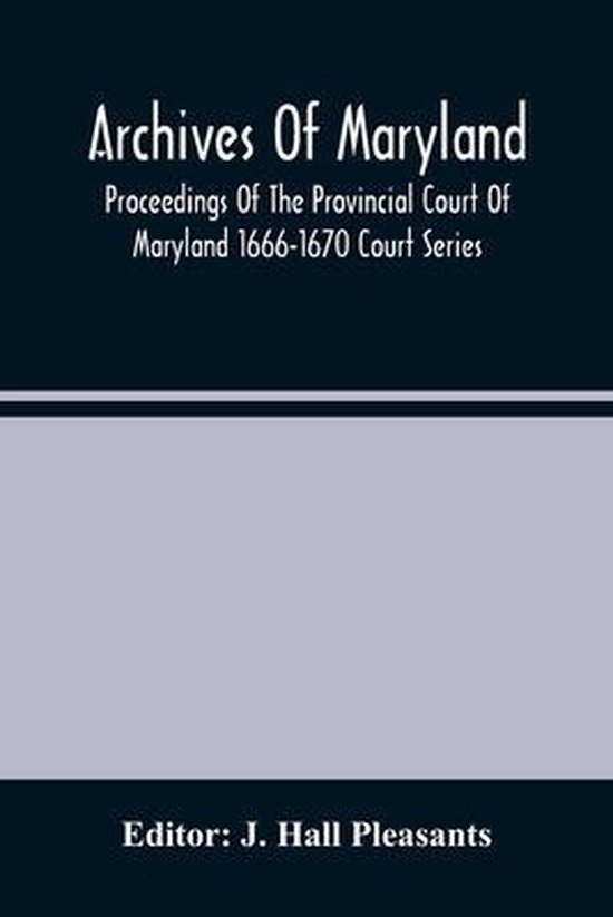Archives Of Maryland; Proceedings Of The Provincial Court Of Maryland 1666-1670 Court Series