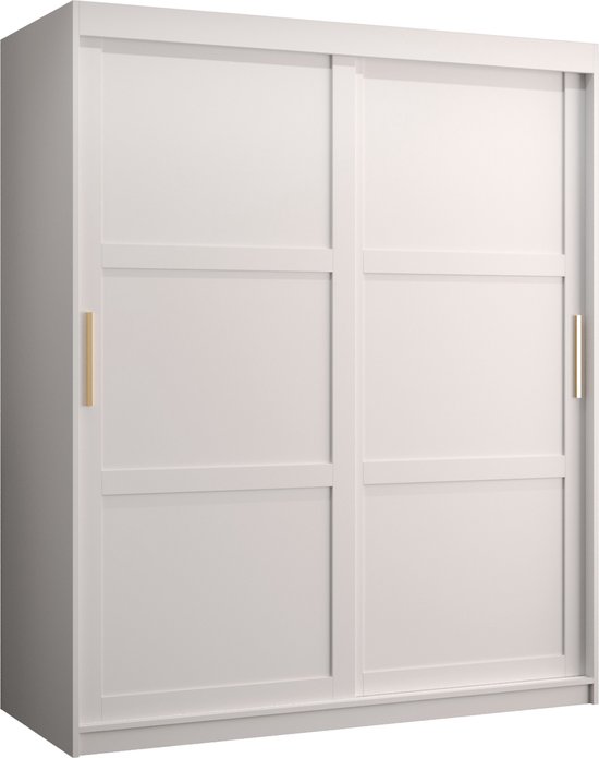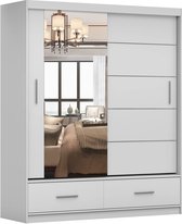 Armoire à portes coulissantes Armoire avec 2 portes coulissantes Armoire armoire de chambre Tringle à vêtements avec étagères (LxHxP) : 150x200x60 cm - Rumble I (Wit, 150) avec tiroirs
