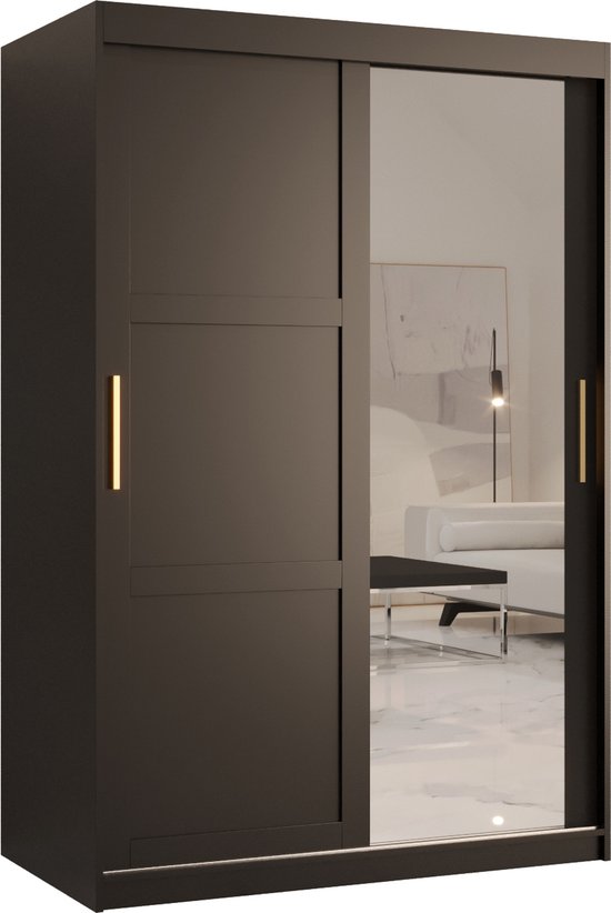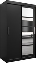 Armoire à portes coulissantes avec miroir Armoire à 2 portes coulissantes Armoire armoire de chambre Tringle à vêtements avec étagères (LxHxP) : 120x200x60 cm - Rumble II (Zwart, 120)