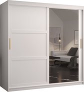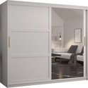 Armoire à portes coulissantes avec miroir Armoire à 2 portes coulissantes Armoire armoire de chambre Tringle à vêtements avec étagères (LxHxP) : 200x200x60 cm - Rumble II (Wit, 200)