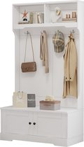 Armoire avec porte-manteau Merax - Armoire avec miroir - Meuble à chaussures - Étagère à chaussures avec banc - Marron avec Zwart