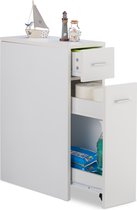 Armoire de rangement étroite avec 2 paniers et 2 compartiments ouverts - Plastique - Blanc