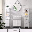 L'armoire est en MDF classe E1. L'armoire dispose de deux paniers amovibles séparés que vous pouvez placer dans l'un des trois espaces inférieurs.