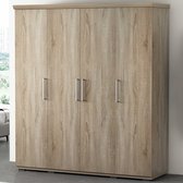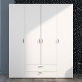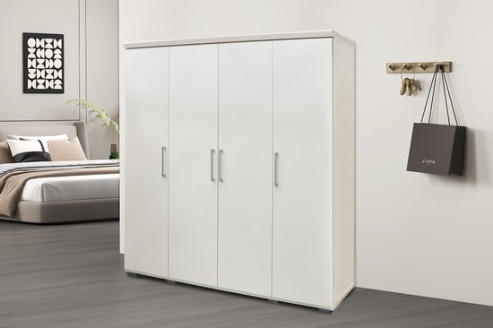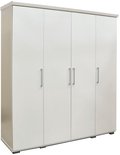 Armoire Nikkie | 183x160x52cm | 4 portes | blanc - Rousseau - Armoires de chambre à coucher - Blanc - Panneaux de particules - Armoires de chambre à coucher